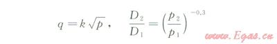 式中q為流量,m3/ min;p為壓力,kPa;k為流量—壓力系數(shù),與管徑大小有關(guān);D1和D2分別對應壓力p1和p2時的液滴直徑。