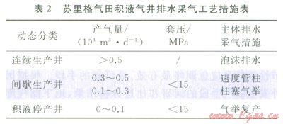 加強排水采氣成熟技術的規模化應用,形成了不同類型氣井排水采氣技術對策(表2);積極開展數字化關鍵設備與控制軟件的研發,低產低效井排水采氣技術應用成效顯著。2012年開展各類排水采氣2330口井/4.36萬井次,累計增產氣量4.86×108m3。