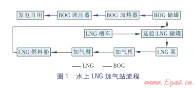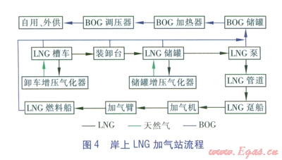 LNG儲存及加氣系統產生的BOG氣體經儲存、加熱、調壓后,部分供岸上站內生活自用,其余部分供應站外用戶。