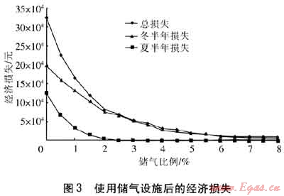 使用儲氣設施后的燃氣負荷預測誤差造成的經濟損失見圖3。