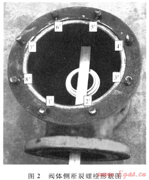 閥蓋上的8個螺栓光孔均發生了月牙形磨損或擠壓變形成為橢圓形,其中橢圓長軸沿徑中心。對光孔長軸和短軸進行測量并計算橢圓度,發現1#、2#、3#、8#光孔比4#、5#、6#、7#光孔橢圓度大(光孔編號與螺栓編號一一對應)。