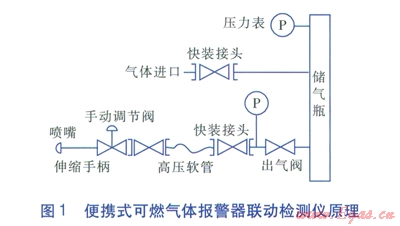 便攜式可燃氣體報警器聯動檢測儀是一種用于檢測可燃氣體報警器工作狀態的裝置,它可以用指定濃度的可燃氣體(以下簡稱標準氣體)對報警器進行檢測,這樣既能夠測試報警器的工作狀態是否正常,同時還不對傳感器等靈敏部件造成損壞,其原理見圖l。