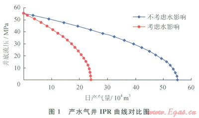 由圖l可以看出,不考慮水影響時計算的無阻流量要遠遠大于考慮水影響時計算所得的無阻流量。根據(jù)單相氣流的滲流理論與氣水兩相的滲流理論分析可知,此計算結果是可信的。這也表明氣井的產水將大大地降低氣井的產能。