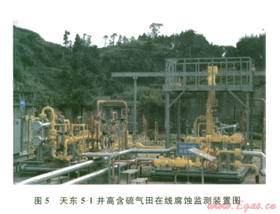 自主研發(fā)了國(guó)內(nèi)首個(gè)高含硫氣田在線腐蝕試驗(yàn)裝置,形成了可變流速、氣液兩相高壓在線腐蝕監(jiān)測(cè)技術(shù),可在實(shí)際流態(tài)條件下對(duì)材料耐蝕性能進(jìn)行在線監(jiān)測(cè),驗(yàn)證材料和焊接工藝在現(xiàn)場(chǎng)應(yīng)用的可靠性。圖5為天東5-1井高含硫氣田在線腐蝕監(jiān)測(cè)裝置。