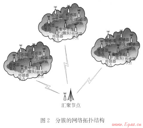 考慮到系統網絡結構的特點和應用到管道監測中實際的網絡拓撲,路由協議采用了多層次分簇的協議[4],具體網絡結構和工作過程見章節1。