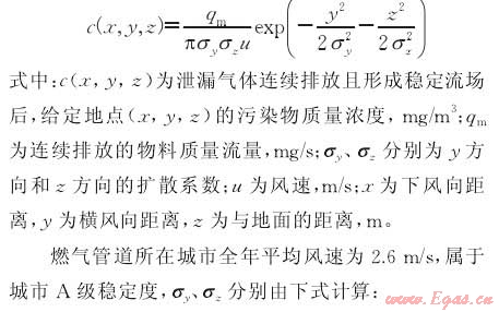根據Pasquil-Gifford模型[4],假設連續泄放,計算蒸氣云濃度: