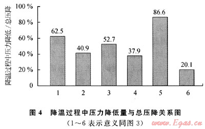 考慮到介質內水合物在溫度下降過程中成核并生長,因此考察降溫過程中介質內壓力變化與時間的關系有助于進一步了解水合物在介質內的形成機理。計算溫度由12℃降至0.5℃過程中不同時刻氣體壓力降低量占總反應過程壓降百分比,并作圖5。