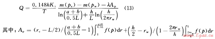 因此,根據等值滲流阻力公式,考慮氣體滑脫、啟動壓力梯度、應力敏感的水平井產能公式為: