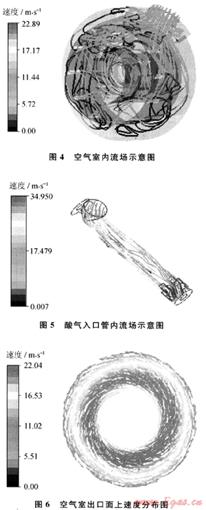 2.1 空氣室和酸氣入口管流場(chǎng)計(jì)算結(jié)果