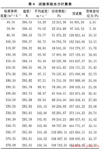 在進行減阻劑測試之前,首先要進行空白管道的水力分析??諝庥蓧嚎s機壓縮到0.8MPa后進入測試管道,保證壓縮機出口壓力pi不變,標準體積流量Qg調節范圍為40~280m3/h,經測量、計算得到一組數據如表4所示。
