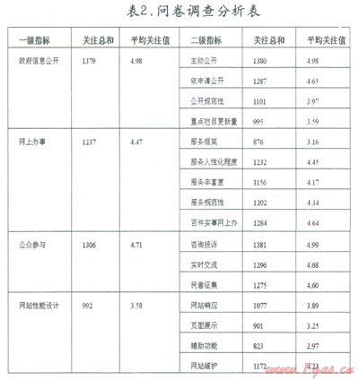 2)社會各階層很少注意的項目,例如監督管理、在線受理、專題欄目等,雖然也十分重要,但其權重應該與其他重點指標有差距,才能體現評估的公正性;