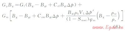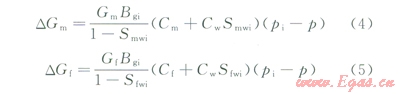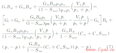 根據(jù)頁巖氣藏地下儲集空間體積平衡原理,基質(zhì)系統(tǒng)原始游離氣體積+裂縫系統(tǒng)原始游離氣體積+原始吸附氣吸附相體積=剩余游離氣體積+剩余吸附相體積+基質(zhì)體系巖石與束縛水膨脹體積+裂縫體系巖石與束縛水膨脹體積,其中剩余游離氣體積南剩余的原始游離氣及剩余的解吸氣組成,即