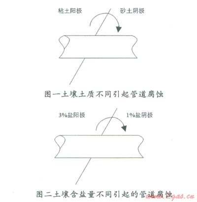 土壤腐蝕是油氣長輸管線的管外腐蝕的主要來源。土壤對管線的外部腐蝕,既有化學(xué)腐蝕,又有電化學(xué)腐蝕。化學(xué)腐蝕主要是與土壤中所含的有機(jī)質(zhì),各種鹽類對金屬的腐蝕性有關(guān)。電化學(xué)腐蝕是因?yàn)橥寥朗且环N導(dǎo)電介質(zhì),因而含水的土壤具有電解溶液的特性,從而在不均勻的土壤中構(gòu)成原生電池,而產(chǎn)生電化學(xué)腐蝕。