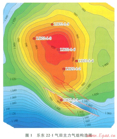 根據l993年采集的常規二維地震資料,確定樂東22-l構造預探井鉆探基本原則為:①地震資料可靠度較高的位置;②有自圈的位置;③縱向可能多層且能控制一定儲量的位置。基于此,在圈閉的東南處鉆探I井。通過鉆探,在第四系樂東組二段、三段和新近系鶯歌海組一段共發現6套氣藏,測試產能高(無阻流量介于23~238m3/d),氣體組分差異大(非烴含量介于15.4%~85.7%),證實了該區的含氣性。但要將其經濟開發還需繼續擴大儲量規模。