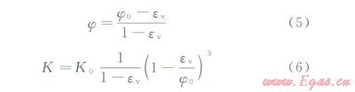 式中j為儲層的動態孔隙度,無因次;j0為儲層的初始孔隙度,無因次;ev為計算單元的體積應變,無因次;K0為巖石的初始滲透率,mD。
