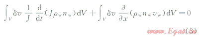 根據流體質量守恒原理,流體介質的連續性方程為[14]: