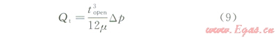 式中Qt為黏結單元切向流量,m3/s;topen為張開位移,m;Dp為黏結單元間的壓差,Pa。