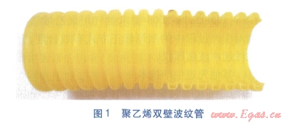 波紋管管材為中密度聚乙烯(MDPE)材料,一般適宜應(yīng)用在低壓管道。有別于普通聚乙烯管,聚乙烯雙壁波紋管見圖1。波紋管采用較薄的雙壁設(shè)計(jì),外壁呈波浪狀,能維持管道形狀,防止穿越彎頭時(shí)管道折疊;內(nèi)壁較平滑,使燃?xì)饬鲃?dòng)時(shí)摩擦造成的壓力損失降至最低。波紋管有相當(dāng)高的柔韌性,大大加強(qiáng)插管時(shí)穿過彎頭的能力,最多可穿過2~3個(gè)90°彎頭,每次插管操作可更換10~15m長(zhǎng)的鍍鋅鋼管。使用波紋管修復(fù)取代傳統(tǒng)開挖修復(fù),能減少地面開挖及對(duì)庭院環(huán)境的破壞,還可降低修復(fù)成本,加快修復(fù)進(jìn)度。