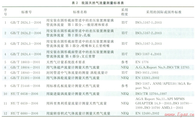 我國等同和修改采用ISO、EN、AGA及ASTM標準發布29項取樣、組成分析、發熱量和流量測量、能量測定、量值溯源方法的國家和行業標準(表2、3),初步建立與國際接軌、達到國際先進水平的能量計量標準體系。GB/T l8603《天然氣計量系統技術要求》和GB/T 22723《天然氣能量的測定》是能量計量兩個核心標準。