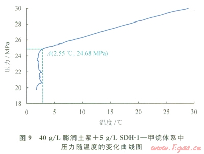 三元聚合物抑制劑SDH-l在VP/VC分子結構基礎上引入了強親水性基團,以增加聚合物的水溶性。圖9、10反映了加入SDH-1后膨潤土漿中水合物的生成過程。
