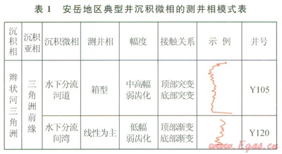 本次研究采用6級劃分方案(巨旋回、超長期旋回、長期旋回、中期旋回、短期旋回、超短期旋回),筆者以Yl05井為例,將須二段劃分為一個中期旋回,即一個上升半旋回,代表基準面上升,可容納空間增加,對應三角洲前緣亞相。該區典型井沉積微相的測井相模式如表1所示。這一時期總體上為一個水域變寬、沉積物粒度逐漸變細的時期,層序疊加樣式為退積式;在其內部進而劃分出兩個短期旋回,分別對應須二下亞段和須二上亞段,其中須二上亞段GR曲線呈箱狀(2233~2316m),說明有大套砂體疊置,層序疊加樣式為加積式到退積式,識別為可容納空間增加的上升半旋回(圖2)。