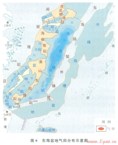 我國東南海域油氣區存在近岸石油聚集帶、遠岸天然氣聚集帶兩大領域,各綿延數千千米。自20世紀70年代以來,近海近岸帶進行了高強度勘探,發現了大量石油,建成渤海,珠江口東、西部,北部灣3個石油聚集區;遠岸帶在西湖、白云、崖城、鶯歌海建成4個氣區。但近岸帶勘探程度高,遠岸帶勘探程度低,遠岸帶是近期天然氣儲量可能快速增長的領域。