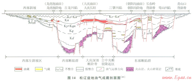 松遼盆地油氣勘探始于l955年,l959年在坳陷區鉆探取得重大突破——發現了大慶油田,2000年以后于深層斷陷發現徐深氣田。迄今為止,該盆地內已發現了眾多油氣田,呈現上油田、下氣田格局,上部為巨型的大慶油田等油田,下部為徐深氣田等大氣出。