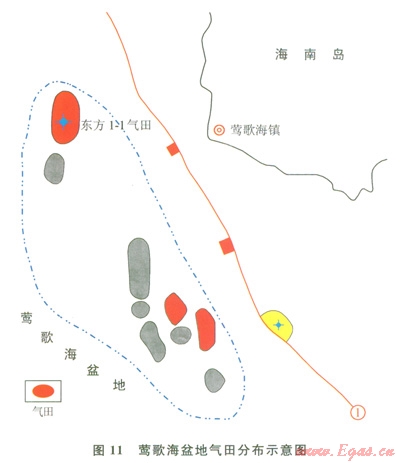 鶯歌海盆地油氣勘探始于20世紀50年代,經過多年來持續不懈地勘探,在鶯中凹陷中央背斜帶的背斜和巖性圈閉獲得了一批重要發現,其中東方l-l氣田和東方l3氣田(包括東方l3-1和東方13-12)都是千億立方米級別的大氣田。勘探與研究成果均顯示鶯歌海盆地是一個氣型盆地。