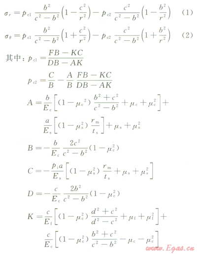 水泥環應力分布及一界面處水泥環位移計算公式: