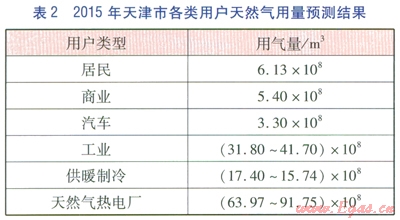 由表3可知,天津市的季節不均勻性主要體現為冬季用氣負荷較高,這是由于2015年規劃新建熱電廠絕大多數為天然氣熱電廠,不僅用于發電還用于冬季供暖,這就造成了冬季天然氣用氣負荷的增加,冬夏季用氣負荷差異明顯。
