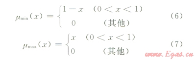 由于求得的結果事件都以模糊數表示,為了對比風險的大小,需要將模糊數轉化為相應的概率值,即FPS(Fuzzy Possibility Score)。在模糊集理論中,這個過程又叫解模糊化,這里是基于Chen和Hwang提出的模糊最大和最小集合方法[10]。該方法定義的最小及最大模糊集分別為: