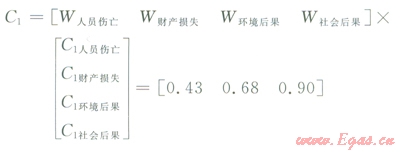式中A1表示人員傷亡、A2表示財產損失、A3表示環境后果、A4表示社會后果。