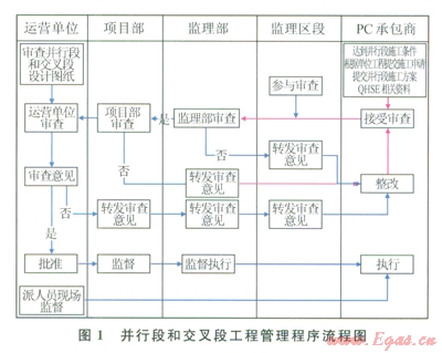 陜京三線與陜京二線管線并行長度約460km,交叉42次,與陜京一線交叉1次。鑒于并行距離長,交叉次數多的特點,工程開工前,建設單位與運行單位聯合發布了陜京三線輸氣管道與陜京二線、陜京一線輸氣管道并行段和交叉段工程管理程序(圖1),明確參建各方職責,有效地保障了陜京三線建設速度和陜京一線、二線的安全運行。