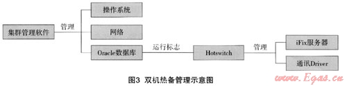 整個系統的切換由集群管理軟件和HotSwitch軟件管理,其關系如圖3。