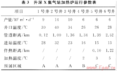 以升深X集氣站為例進行優化前后投資對比分析。該站有6口井,采氣管道為7.851km,設計壓力均為29MPa,若采用井下節流技術,井口壓力降為7.0MPa,計算得到該集氣站加熱爐運行參數見表3。