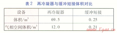 根據模擬結果,再冷凝器停運時,由于緩沖短接氣相空間較小,緩沖能力不足,所以水擊壓力較大。在設計再冷凝器或緩沖短接時,需要考慮水擊產生的影響,可以適當放大氣相空間。