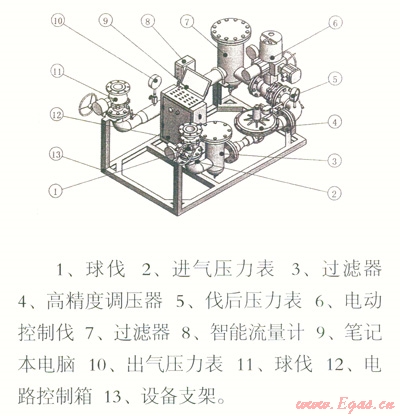 本裝置系由電腦和高精度的調壓閥、電動球閥…等組成,能自動控制保障安全置換所需輸入天然氣的氣量和壓力,并裝配有適用於各種管徑的高壓軟管和活接頭,可適用於不同容積的管道(不同管徑和長度)和球罐的置換工作。當“置換裝置”與被置換管道或球罐聯通后,只要在電腦鍵盤上輸入不同管道的公稱走私,電腦便能自動控制調壓閥和電動球閥輸入所需要的保障安全置換的天然氣的流量和壓力,任何會使用鍵盤認識數字的人都能操作。