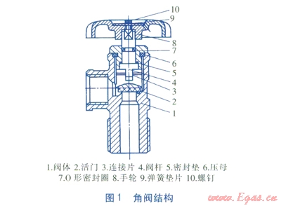 角閥帶有手輪,順時針轉動可關閉角閥,角閥結構見圖1,與角閥配合的調壓器外形見圖2。