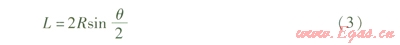 根據圓內接多邊形基本理論,建立彎曲道路上燃氣管道敷設的數學模型為: