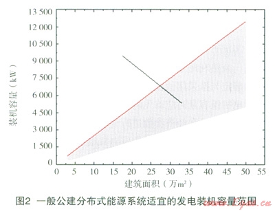 在實際項目實施中,如果沒有足夠資料對供能對象做詳細的負荷分析,可結合相關技術規定及已有項目運行經驗簡單確定發電機組的容量。對于一般公共建筑,可根據其功能特點,按照設計電負荷的20%~50%選擇發電機組容量,全年負荷較為穩定的建筑取上限,負荷波動較大的建筑取下限,如圖l所示。
