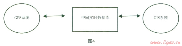 車載GPS終端接收GPS信號以后,通過移動GPRS網絡將應急搶修車輛的地理信息實時發送至調度指揮中心,通過GPS系統與GIS系統的中間數據庫,GIS系統實時讀取車輛的地理位置,并將其顯示在電子地圖上。(見圖4)