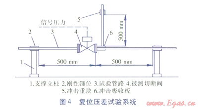 標準CJ/T 335—20l0中的條款6.2.8.1規定,只有對于進口公稱直徑和出口公稱直徑均不大于150mm的切斷閥,才進行復位壓差試驗。因為對于進口公稱直徑或出口公稱直徑大于150mm的切斷閥,由于閥體和管道系統的體積和質量較大,慣性較大,可預見的外力因素的擾動對切斷閥機械結構的影響在工程上可以忽略不計。