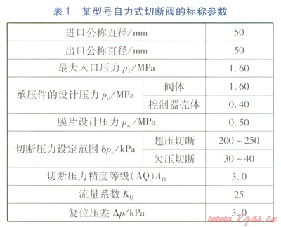 以廠家聲明參數(標稱參數,見表1)的切斷閥為例,詳細分析切斷閥的檢驗方法。