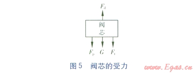 壓力調節器閥芯的受力見圖5。當比例線圈未施加電流時,線圈產生的電磁力Fd,為0,在閥芯重力G、彈簧作用力Ft、燃氣對膜片的作用力Fp共同作用下閥芯處于關閉狀態。