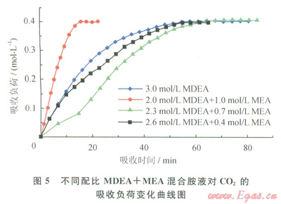 3.3 不同配比MDEA+DEA混合胺液對(duì)CO2的吸收性能