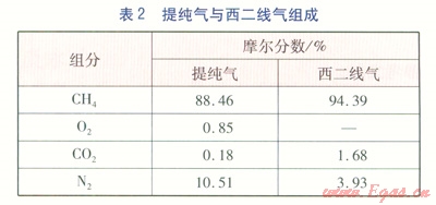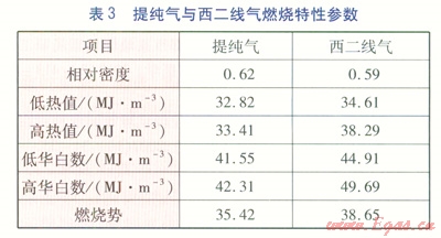 提純氣與西二線氣組成見表2,提純氣與西二線氣燃燒特性參數見表3。