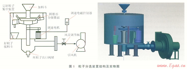 1)筆者提出綜合利用粒子旋轉(zhuǎn)的離心力和外部注入氣流的氣流拖拽力來實現(xiàn)好壞粒子分離的新思路,設計制造出了粒子分選裝置。