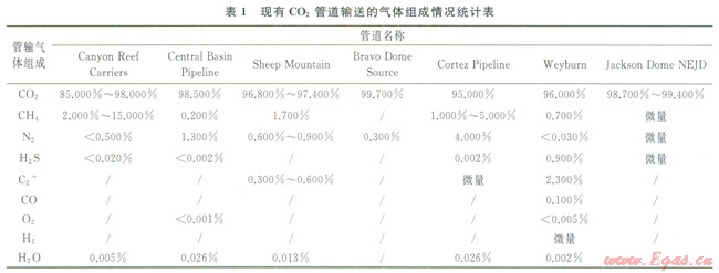 CO2管道輸送的混合氣體組成取決于它的來源。來自不同源頭的CO2流體接入管道設施中時,管道內混合氣體組成會發生變化。不同的捕捉技術也會導致CO2混合氣體中產生不同的化合物,目前CO2輸送中這方面的經驗較少。
