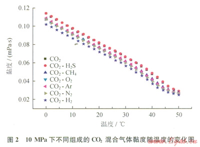 從圖2可以看出,雜質通常會使CO2混合氣體黏度降低。