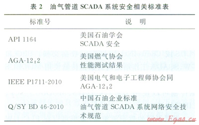 針對上述數(shù)據(jù)傳輸存在的風險進行安全防護設計時,應當遵循日前已有的油氣管道SCADA系統(tǒng)安全相關標準。表2中列舉了本文參考文獻的主要標準[10-13]。